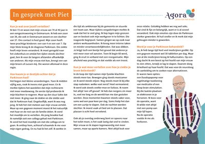 Piet heeft al jaren Parkinson en vertelt over zijn leven met deze ziekte. Hoe hij steeds meer achteruitgaat en wat hij nodig heeft.
